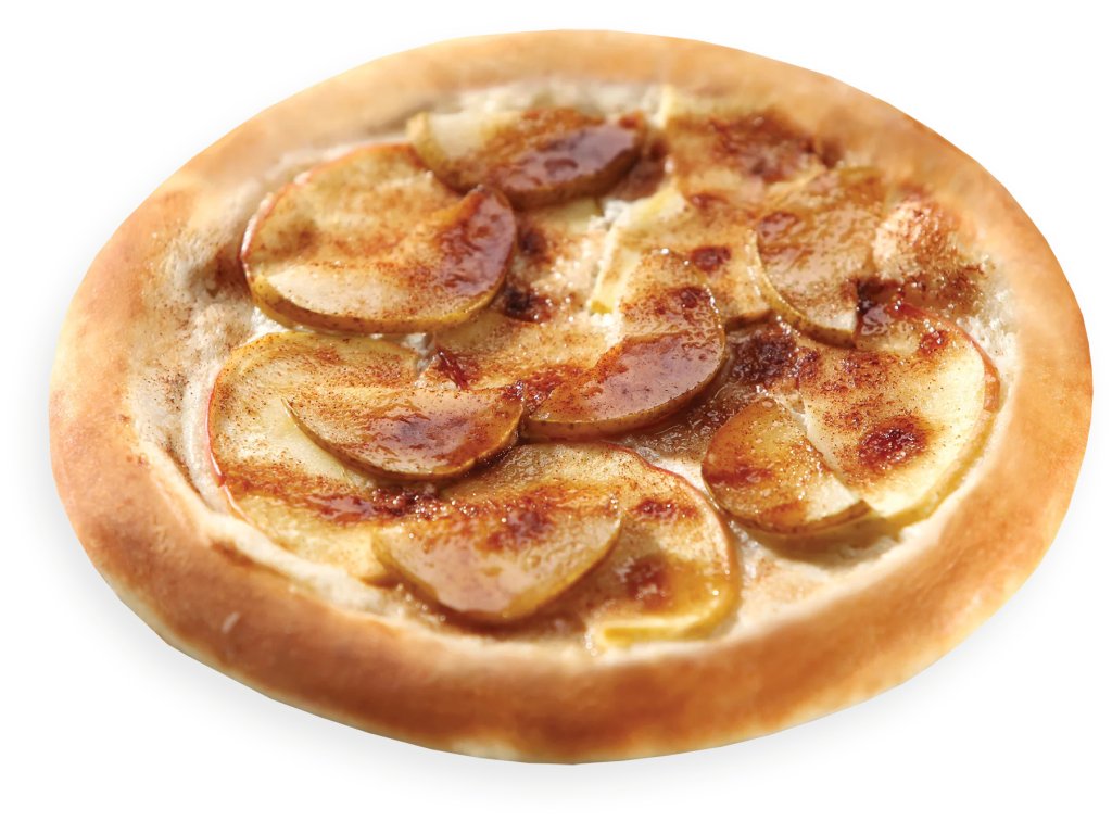 Jemná pizza s jablky a hruškami, doplněná špetkou cukru a skořicovou posypkou, přináší sladkou a voňavou chuť, která připomíná oblíbený štrůdl. Skvělá volba pro milovníky ovocných pizz a dezertů.